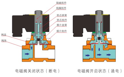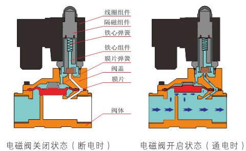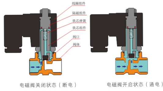 原理:mksports体育-mk(中国)一站式服务官方网站直动式电磁阀分常闭型和常开型两种。常闭型电磁阀断电时为关闭状态,线圈通电时产生电磁力,动铁芯跟静铁芯吸合,电磁阀阀口打开,介质(流体)通过;当电磁阀线圈断电时电磁阀消失,在弹簧的作用力下,电磁阀动铁芯复位,阀口关闭,介质(流体)不同,电磁阀呈关闭状态。常开型与之相反。